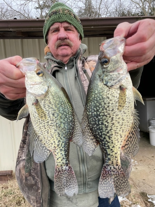 The lake level is 554.32 and has dropped 1-1/2 inches in the last 24-hours with sluice gates open to an equivalent of 1/2 of a generator. The White River at Newport is 14.67 feet and dropping slowly and the surface water temperature is 46-degrees on the main lake. The water is clearing a bit and Scuba Steve could see his lure down 5-6 feet. Overall the lake is in excellent condition and at a good level. I do not charge out there in the early morning when it is coldest and come in when it starts to warm up but go out in the warmest part of the day and usually stay out until dark. The best bite for the large crappie has been from sundown to dark. I catch a few bass and some smaller crappie earlier but not the big ones. Probably 2/3rds of the fish are caught in a one hour period. Open water fishermen are still catching some stripers in the 5-8 pound range and some white bass dragging stuff through schools of shad and there are some black bass with them. I am mostly fishing brush piles in 20-30 feet of water and the fish are near the bottom early and come up shallower later. I spoon or vertical jig early and cast a jig and minnow past the brush and let it sink into it late. It looks like the weather will warm up again next week but we could get some serious rain about Wednesday. People are asking about a shad kill and others say we need one bad. Actually we never need a shad kill. If there are too many shad for the gamefish to eat there are not enough gamefish. What a shad kill does is make fishing easier. When the water temperature drops into the high 30's the shad get lethargic and flutter around and then stop movement. They are then easily caught by game fish and they gorge on them. Colder than that they die and sink to the bottom and are sucked through the generators for the downstream trout. During a shad kill everything gets fat again. Too severe and too long of a shad kill reduces the amount of feed in the lake to the point there is not enough and this is not good. There are a lot of threadfin shad in the lake now but I have seen more. Much more. I have seen them black out a fish finder from Robinson Island to the 62 bridge. Too many are better than too few for the fish but when there are too few most of the existing schools of shad are holding feeding fish and the trollers catch them very easily and the meat hunters have a hayday. When there is none it is bad for the game fish and they get skinny and starve and are not healthy. This happened to Greers Ferry a few years ago and it was not good. Game and Fish had to raise shad in their hatcheries and purchase some from out of state to replentish the lake. I do not want that to happen to Norfork. Fishing was poor in Greers Ferry during this time. In general a shad kill just makes fishing easier and a good population makes for healthier fish. Right now there are lots of shad and we are not near a shad kill but it could happen. If it does it is usually in February and it has to get unseasonably cold. When you see shad flittering around the surface on windblown banks and very lethargic it is happening. When you see large numbers of Sea Gulls just below the dam it is happening big time. You will see large numbers of trout fishermen lining the bank if this happoens as if it is not easy enough to catch trout as it is. Blackburns Resort and Boat Rental continues to have the best prices on both cabins and boat rentals in the Ozarks and a free stall for your boat comes with the cabin at our dock. Things are looking good here and we will not charge you too much. Scuba Steve will show you where the brush piles are located when you gert here. We have some good ones.