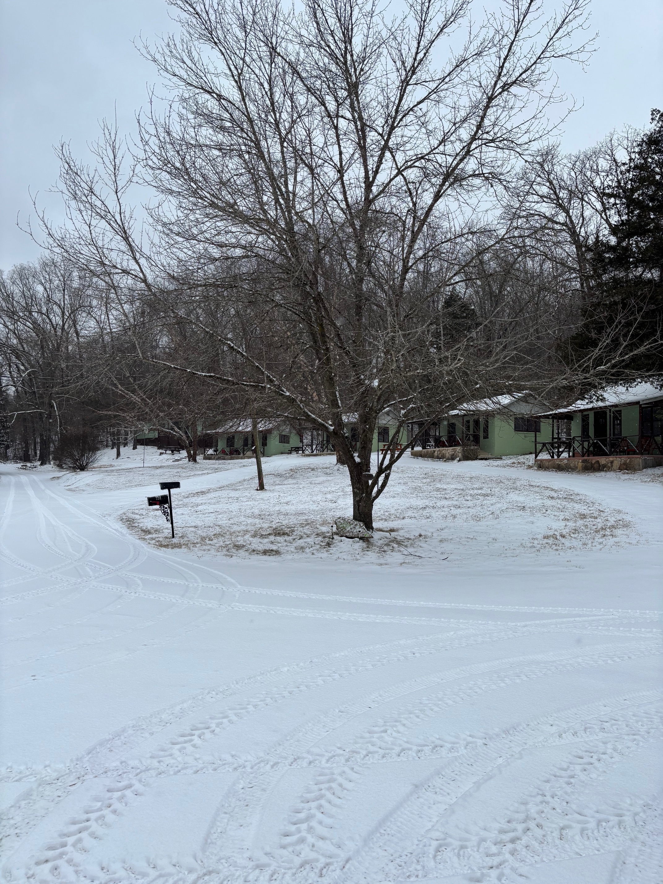 The lake level is 548.45 and has dropped 2-inches in the last 24-hours with one generator running about 1/2 the time. The surface water is clearing and is about 45-degrees. Overall the lake is at a good winter level and in good condition for fishing. The White River at Newport is 1.93 feet and about ready to dry up. We have received a little less than 2-inches of snow so far with more to come tonight and tomorrow morning. The ground is not covered yet. The ambient temperature is 10-degrees and it is snowing very lightly. It looks like the ice is going south of us. The north wind is cold. Scuba Steve is getting out all of his electric clothes as the cold is going to last a while. When the eyelets on his fishing pole ice up and get into the reel and mess up the drag he quits fishing. It should get above freezing the middle of next week. While you are inside out of the weather this is a perfect time to plan your spring fishing trip and family summer vacation at Blackburns Resort and Boat Rental. There will be no price increases for 2026. We continue to have the best place with the best prices on both cabins and boat rentals in the Ozarks and especially welcome Veterans and Police. All cabins are individual with no duplexes and all have big covered porches. Sorry we have no mosquitoes. Blackburns is the closest resort to Mountain Home, dining and shopping and you can get non-alcohol gas just up the road. We have tackle and live bait all year. Several places deliver food here but our kitchen cabins are fully equipped and all have their own picnic tables and Webber BBQ's. A free stall for your boat comes with a cabin rental of two days or more and you can launch right here. Blackburns has it all and at the best price. Compare prices and call Debbie for a reservation at 870-492-5115. It is nice here and the price is right. We are the family and fishing headquarters for Norfork lake. Why pay more? Scuba Steve will show you where his brush piles are located and help you with fishing.