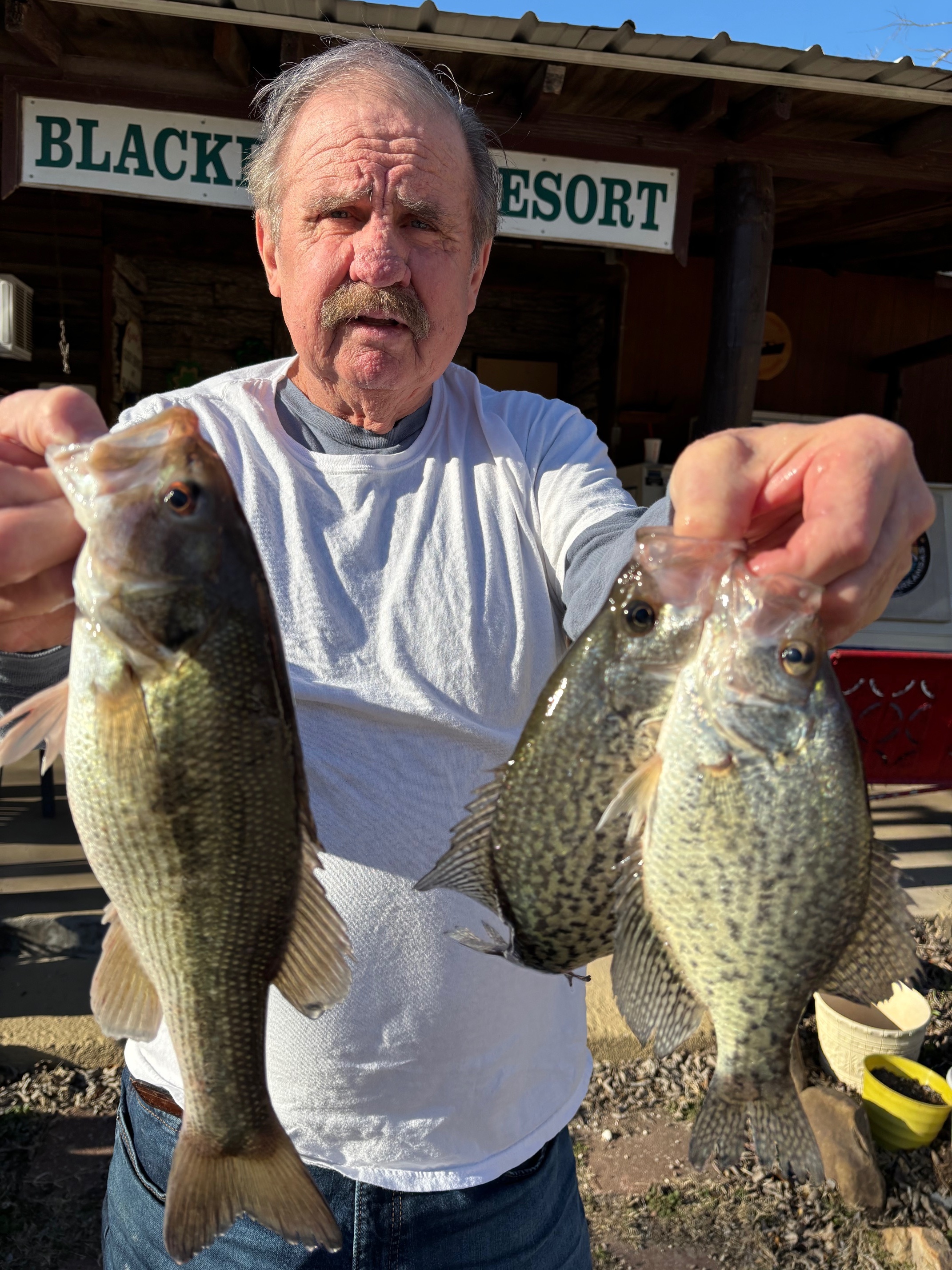The lake level is 546.30 and has risen 3/4 inch in the last 24-hours with no generation. We could get significant rain in the next few days. The lake level is exactly where it should be for this time of year. Scuba Steve just hopes they try to keep it down as best they can. That would be a change. They always in the past have quit generating when it rains. High water does not affect fishing much but it sure affects lake and road access. You can alway get to Blackburns dock no matter how high the water gets. The surface water temperature is 51-degrees and has not changed much lately. The water in the creeks has cleared again after the 1-inch earlier rain and a lot of Bluegill have moved in under Blackburns dock and that usually happens when spring is here. Time change is Saturday night. The White River at Newport is 3.74 feet and rising but still low. The long range forecast does not indicate any frost is on the way. The lake overall is in good condition and at a good level for fishing. Bass and Crappie fishing continues to be the best bites. Spoons and Grubs are the best bites. Small Crankbaits are also catching a few Bass. Warmouth are showing up shallow and that is also a spring indicator but Scuba Steve does not trust March. Anything can happen from snow to storms. April is much better. There will be no price increases this year at Blackburns Resort and Boat Rental. We continue to have the best place with the best prices in the Ozarks. Compare prices and call Debbie at 870-492-5115 for a reservation to get the cabin and boat rental of your choice. We are family owned and family operated and are not sold or for sale. We like it here. Scuba Steve will show you where his brush pilles are located when you get here. It is nice and the price is right. We especially welcome Veterans and Police.